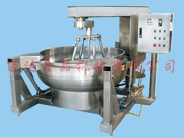 產品特點:本機主要用于顆粒休閑食品表面粘附調味原料如芝麻、茴香、紫鹽等粉料、漿料、可炒制蔬菜。液化汽、天然汽加熱、行星式四頭攪拌器變頻調速、自動出料。